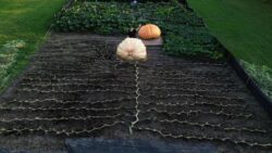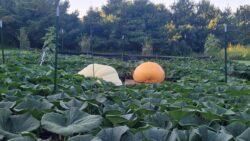 Each vine is pruned daily to ensure only one pumpkin per plant.